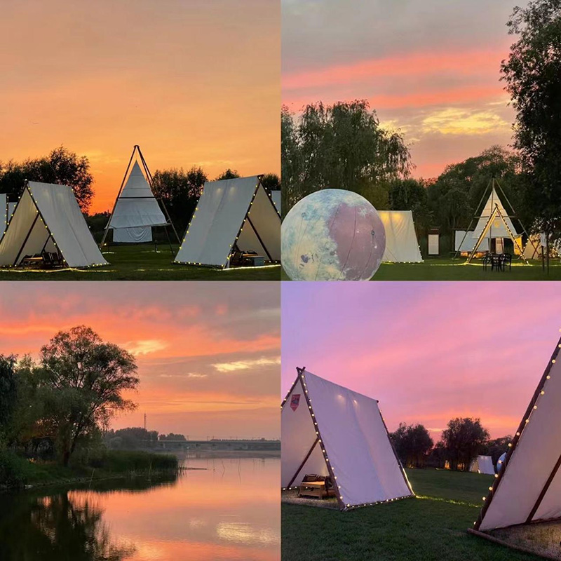 將現(xiàn)狀高爾夫練習(xí)場草坪區(qū)域改造成帳篷營地,供游客進行露營、觀星、野餐、篝火晚會等活動,區(qū)塊劃分帳篷搭建位,規(guī)范游客合理安排帳篷位置。設(shè)置露營野餐的服務(wù)點,提供售賣零食飲料和帳篷出租的服務(wù)。